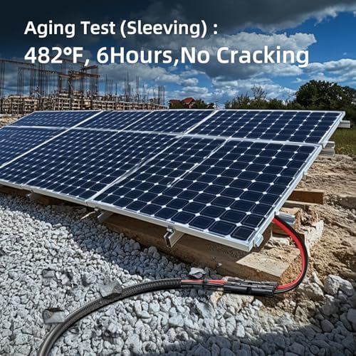 - 【Enhanced Solar Cable with Protective Sleeving】Our solar cables feature heavy-duty flame-retardant sleeving for superior abrasion resistance against dragging, tangling, and daily wear. The sleeve ensures easy coiling and safer operation, withstanding temperatures up to 248°F (120°C).