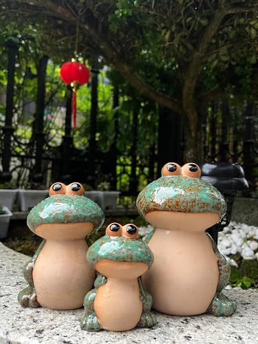 Frog Garden Decor Set of 3,Funny Cute Ceramic Frog Garden Statues Yard Decoration Outdoor Holiday Decorations,Ideal Ornament for Outside Pond Pool Patio Front Porch Backyard (Green)