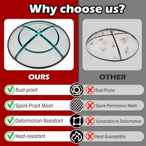 - 【Upgraded Heavy Duty Material】Fire pit lid use upgraded heat-resistant and rust-proof coating hold up to a direct flame.Fire pit screens can withstand the scorching heat and prevent rust formation. heavy constructed, sturdy steel and well made tiny mesh for long last using.