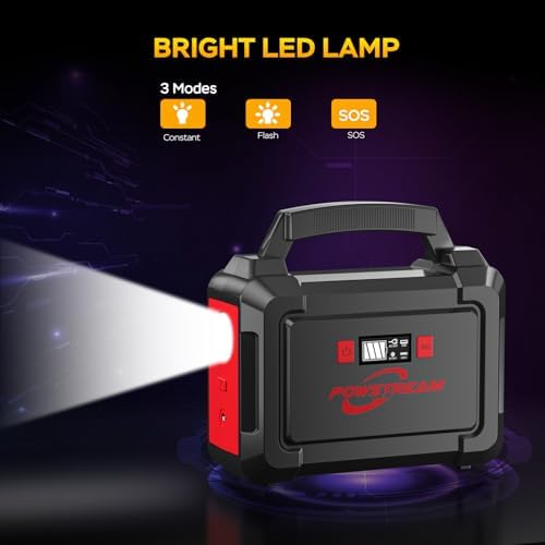 POWSTREAM Solar Powered Generator 167Wh Portable Power Station with Solar Panel 30W Included, 100W Power Bank with AC Outlet QC3.0 for Camping Boat Trip Hunting Outdoor Adventures Emergency Backup