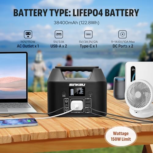 SinKeu Power Bank Station (38,400mAh), 128Wh Portable Power Station, LiFePO4 Battery, 200W Peak Solar Generator for Outdoor Camping, RV Traveling and Hurricane Emergency- Black