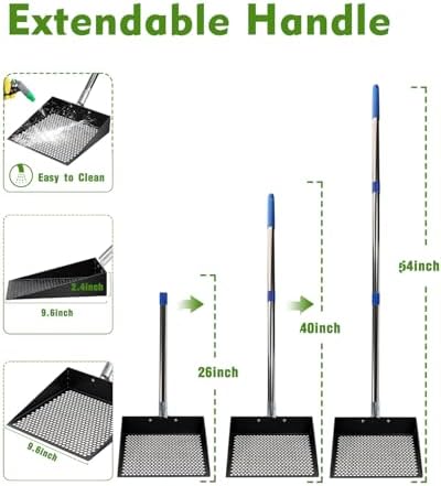 - 【Extended Handle for Ease of Use】 Equipped with a 44.5in long handle made of sturdy stainless steel, this litter scooper allows you to clean the chicken coop without the need to bend over excessively. This design reduces strain on your back, ensuring comfort during use and making it one of the most practical chicken coop cleaning tools.
