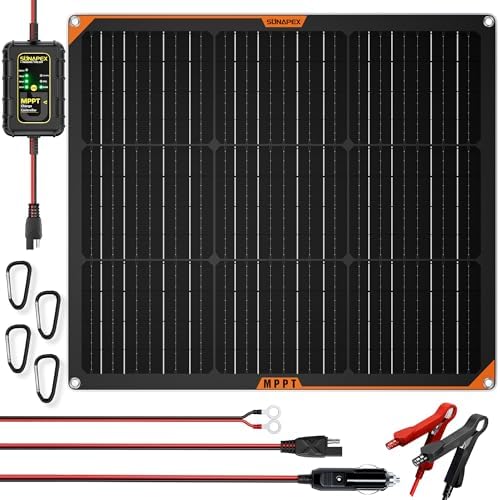 SUNAPEX 50W Flexible Solar Panel with MPPT Charge Controller, Solar Battery Charger Maintainer, 12V Waterproof Solar Trickle Charger for Car, Motorcycle, Boat, Marine, RV, Trailer, Tractor,Truck, etc