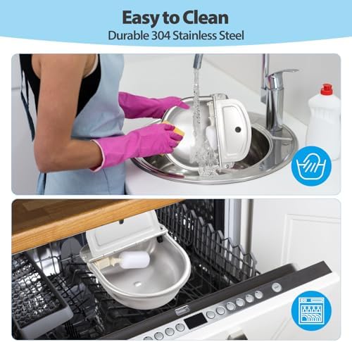- 【304 Stainless Steel - Easy to Clean】Made from robust 304 stainless steel, this auto water bowl is corrosion-resistant and ideal for outdoor use. Its smooth surface is easy to clean, dishwasher-friendly, ensuring easy maintenance and long-term cleanliness.