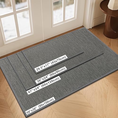 LEKEEPGO Door Mat 17"x29", Non Slip Door Mat Indoor Entrance, Rubber Backing Indoor Door mat Washable Absorbent Low-Profile Doormat Front Entryway Entry Resist Dirt Inside Door Mats, Grey