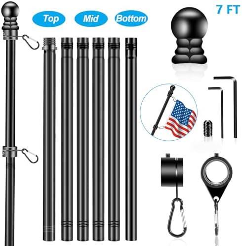 - Adjustable Length & Fit 3' x 5' or 4' x 6' Flags: The Black 7.8 Feet Flag Pole Kit comes with 6 sections removable and adjustable flagpoles, each pole length is 1.3 ft /40 cm, you can be freely combined by reduce the number of mid poles, can adjust the length from 1.3 ft to 7.8 ft depending on the size of the flag, and it suits for 2 x 3 Ft, 3 x 5 Ft, 4 x 6 Ft American flags. The metal flag pole hardware kit can withstand harsh weather elements.