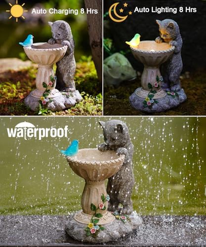 Nacome Solar Cat Birdbath Garden Decor: Outdoor Statues Ornaments for Outside Decorations Yard Art Lawn Porch Patio Balcony - Birthday Gifts Choice for Mom Grandma Women Lover