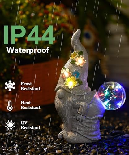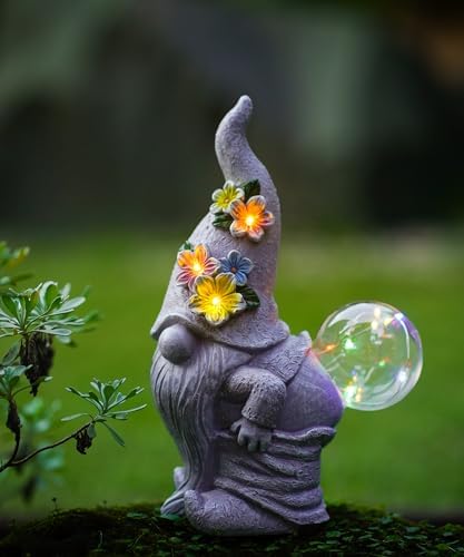 Solar Gnome Statue for Garden Decor: Outdoor Sculpture for Yard Lawn Porch Balcony Patio - Ideal Gift for Lover Mom Women Grandma