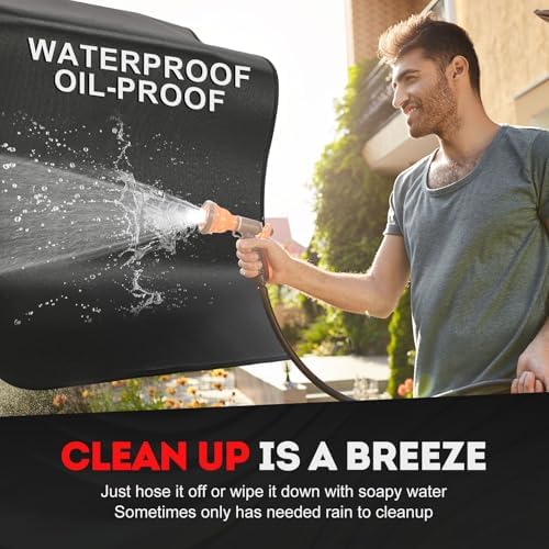 - Grill Deck Protector: Protect your patio, wood deck, or balcony with our BBQ grill matt for outdoor grill deck protector, engineered to shield surfaces from grease splatters, sauce spills, food droppings and hot ashes during backyard BBQs with gas grills. Its anti-slip edges and large size also adapt to food truck kitchens or camping trips, protecting concrete and grassy areas under portable fire pits.