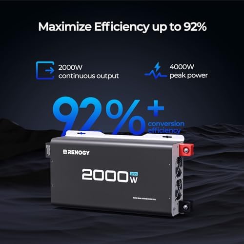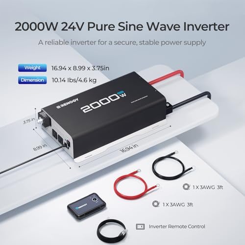 Renogy 2000W 24V Pure Sine Wave Inverter, 4000W Peak Power, 92% Energy Efficiency, with 2 AC Outputs, Remote Control, RV Truck Marine Camping