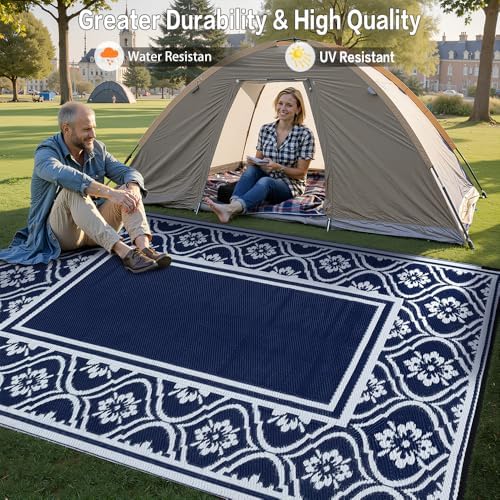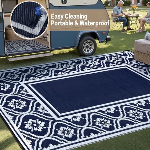Plastic Outdoor Rug 6'x9' Waterproof Camping Carpet Outside Reversible Area Rug Blue Rugs for RV Deck Entryance Porch Picnic Balcony Beach
