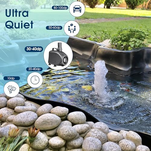 - Ultra-Quiet Submersible Fountain Pump: The installation method of the motor shaft and the material of the paddles have been upgraded to reduce vibration noise and water flow noise during operation, so the motor is ultra quiet when working(30-40 dB)