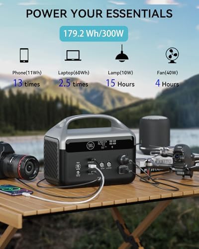 - 【Portable & Powerful Power Station】300W (600W surge) pure sine wave electric generator portable power station, 179.2Wh(equivalent to 56000mAh, 3.2V) capacity, 7 ports, yet weighs only 6.2 lbs(smaller than a toaster) portable power station,DaranEner power station is your perfect partner as portable charger for laptop computer and ideal power bank for outdoor adventure,camping essentials, RV trip travel or even home backup and generator when the electricity fails