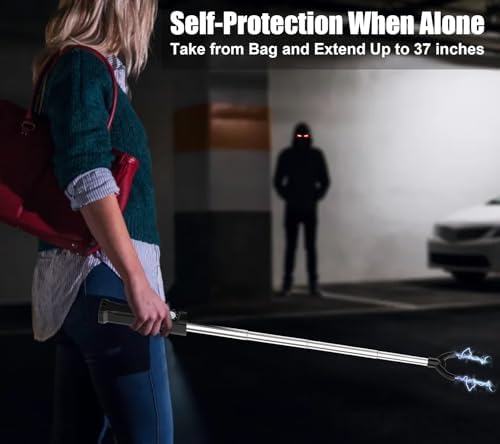Cattle Prod Rechargeable with Led Light, Waterproof Cattle Prod for Dogs, Retractable Cattle Prod Self Defense, Lightweight Dog Cattle Prod Livestock, Cow Prod, Electric Cattle Prod, 37 Inch, Black