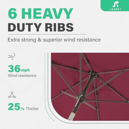 JEAREY 7.5FT Patio Umbrella Market Table Umbrella with 6 Sturdy Ribs, Push Button Tilt/Crank Outdoor Umbrella for Garden, Deck, Backyard, Pool and Beach,Burgundy