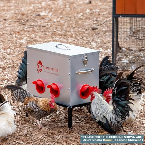 - [GALVANIZED CHICKEN FEEDER]: This automatic chicken feeder is made of 8mm thick galvanized steel, which is durable. It can withstand the test of time and bad weather better than plastic chicken feeders, extending the life of the feeder and reducing the number of feeder replacements.