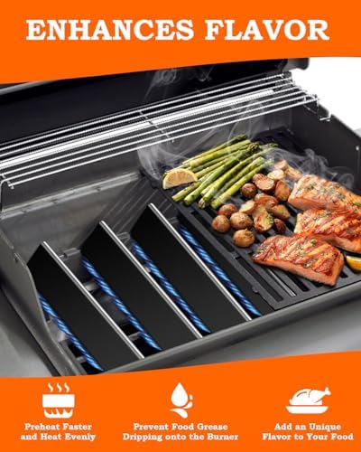 - EVEN HEATING: Paayox grill parts flavorizer bars for Weber heat shield ensure even heating of food, trap dripping oils to prevent burner blockage, and impart a unique flavor through captured fats. After BBQ, you can use soapy water to clean excess oil stains for easy cleaning. When not in use, apply cooking oil and wrap them in a plastic bag to extend their lifespan.