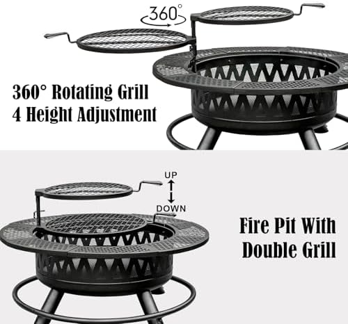 - 【3-IN-1 FIRE PIT WITH 2 GRILLS】This wood - burning fire pit has a multifunctional design, great for outdoor heating and grilling. It comes with 2 cooking grills and a lid. Two grills boost barbecue efficiency, ensuring enough food for groups. Plus, with the lid on, it easily turns from a warm fire pit into a useful table, ideal for outdoor fun or relaxation