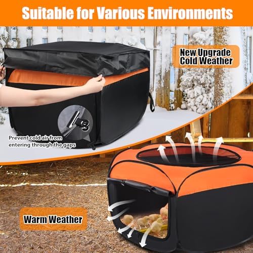 - Easy to Install and Fold: There’s no need for complicated installation! Simply toss it onto the ground, it will automatically pop open with a 'bang'. Unfold it and you'll instantly have a baby chicken coop! (Please exercise caution due to its high elasticity—keep away from children when opening.) When placed outside, the brooding box for baby chicks can be secured to the ground using the included ground stake. When it's time to put it away, just follow our easy folding instructions and store it in its designated bag for convenient storage and transport