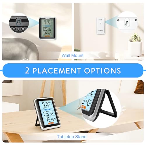 - Fully Wireless & Flexible Placement: Battery-operated (batteries not included) thermometer and remote sensors, place anywhere without needing power outlets, ideal for bedrooms, living rooms, kitchens, offices, patios, greenhouses, and more
