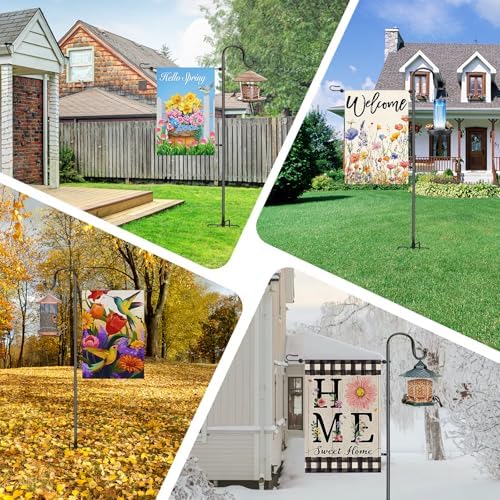 - ➤【2-in-1 Design – Garden Flag Stand and Shepherd Hook】This versatile product serves as both a durable holder for 12x18 garden flags and a shepherd hook for hanging bird feeders, lanterns, or other decorative items, making it perfect for any outdoor setting