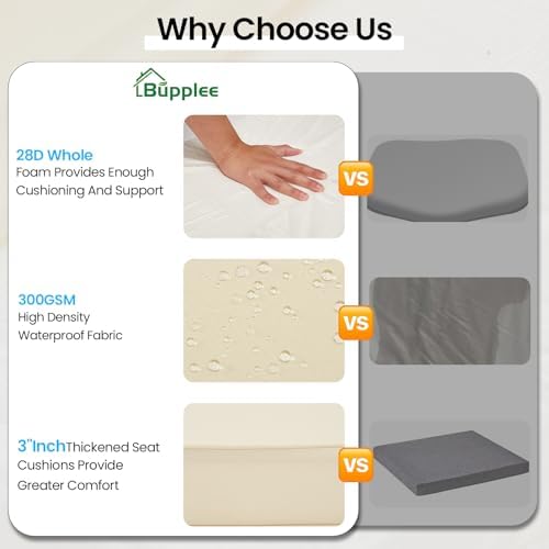 - Durable & Waterproof Material: Made with 300GSM waterproof fabric, ensuring long-lasting use. Perfect for rain, these patio furniture cushions are easy to clean and maintain, making them ideal for patios, lawn, or poolside lounging