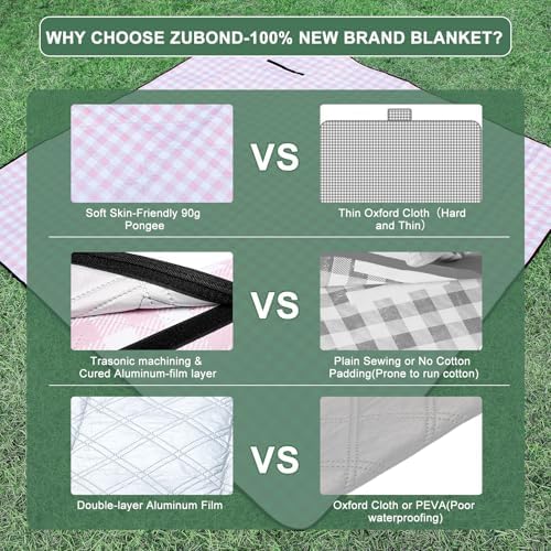 - UPGRADED QUALITY: Unlike others, we have adopted New Production Process and Better Materials. We chose 90g Skin-Friendly Pongee Fabric as the surface of the picnic blanket, in terms of touching and durability far beyond the Oxford cloth or Polyester in the market. And 120g Needle Punched Cotton in the middle of blanket. (Others usually 80g). Also the bottom of the blanket is Double Layer of Aluminium Film .(Others usually Peva and Oxford).