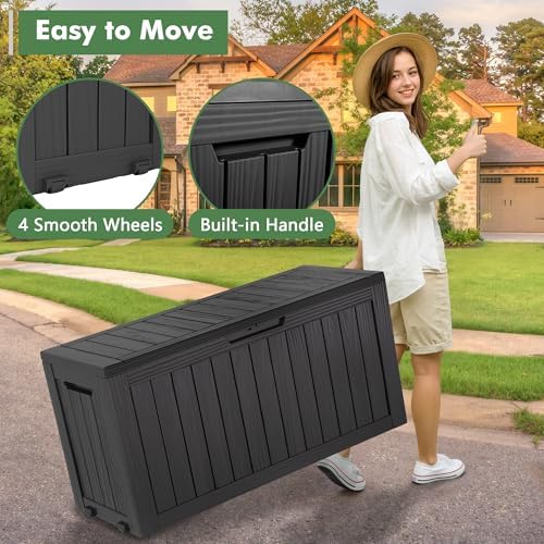 - 👍Smooth-Opening Lid Design: The lid of this outdoor storage box is designed to open easily and close securely without slamming. Its user-friendly construction ensures safe and convenient daily use, making it a reliable choice for your patio or backyard.
