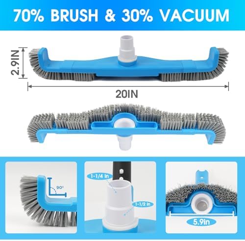 - 20 Inch Larger Size: This upgraded pool brush is 20 inch long which provides a wider cleaning path, allowing for efficient and quick cleaning of your pool's surfaces. With its generous size, it enables you to cover a larger area with each stroke, reducing the time and effort required to clean your pool