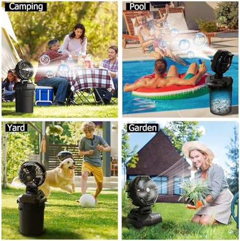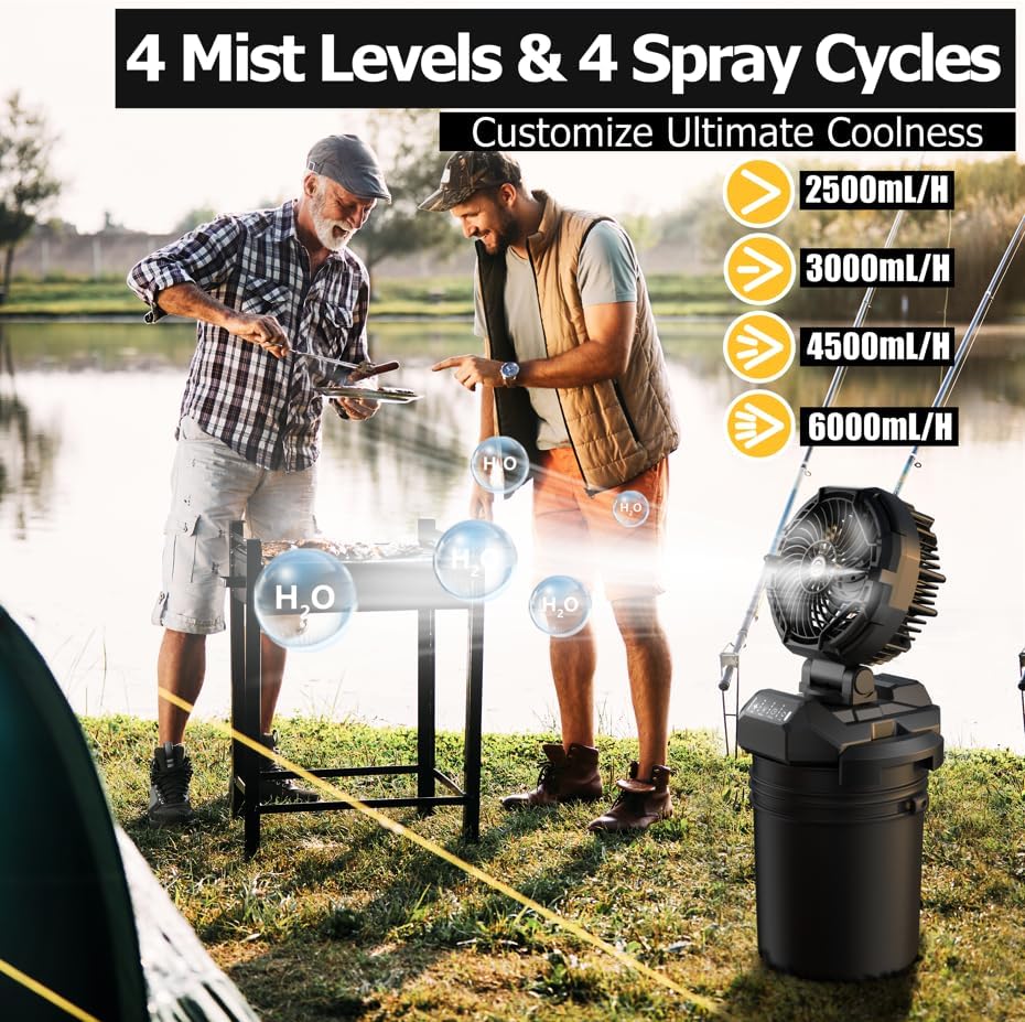 - High-Volume Spray Fan for Powerful Outdoor Cooling: This fan features four adjustable spray modes, with the highest setting delivering up to 6000ml/h of mist for maximum cooling. Ideal for outdoor activities where strong misting is needed, it ensures you stay refreshed under the hot sun. Perfect for camping, beach days, and barbecues