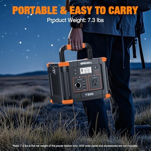 - 【230.88Wh Solar Generator with 40W Panels Included】 GRECELL 300W portable power station with 40W foldable solar panel delivers 330W (600W surge) pure sine wave AC for laptops, mini-fridges, CPAP devices, and more. The 230.88Wh high-capacity battery and solar combo ensures off-grid power for camping, road trips, and blackouts—40W solar input cuts recharging time while staying eco-friendly.