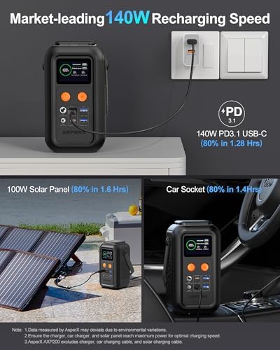 AsperX Portable Power Station, 192Wh LiFePO4 Battery with 200W Output, Dual 140W PD3.1 Fast Charging, Smart Display, 60,000mAh DC Laptop Power Bank Station for Outdoor Travel, Camping, Home, Emergency
