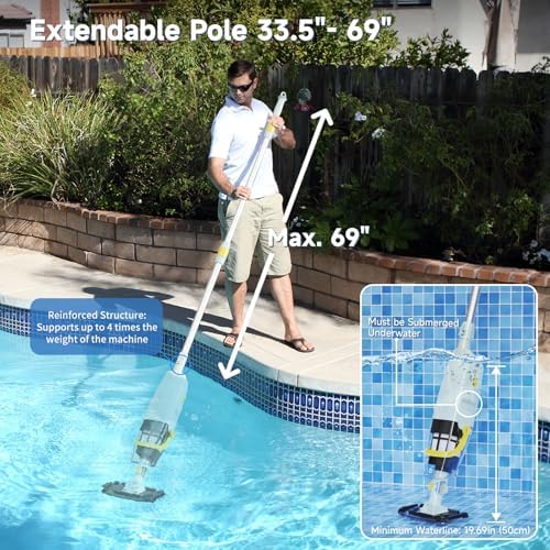 - Enhanced Performance & Durability: The Lydsto S1 2025 Upgraded Handheld Pool Cleaner features a reinforced telescopic pole that supports up to four times the machine’s weight, ensuring stability while cleaning hard-to-reach areas. Equipped with a high-density filter sponge, it efficiently captures fine sand and small debris, delivering a deeper clean for your pool