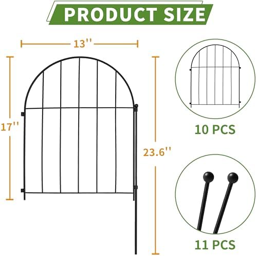 - 【Heightened Size】Each metal garden fence panel, measuring 13 inches wide and 17 inches high,10pcs garden fences and borders for dog provides a total length of approximately 11FT, 17inch height after installation is very stable.