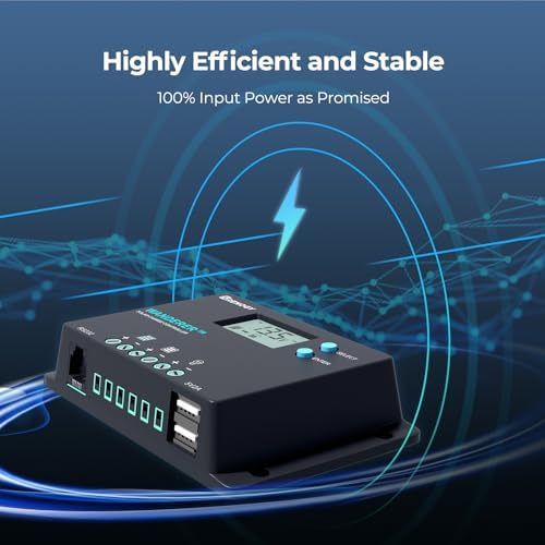 - Smart Monitoring Renogy Charge Controller: Real-Time Data Tracking & USB Charging, upgrade your solar power controller with our backlit LCD that clearly displays voltage, current, and system status. The integrated RS232 port connects to Renogy's DC Home App via BT-1 Bluetooth module for remote monitoring. Plus, the 5V/2A USB port lets you charge phones/tablets directly - a must-have feature for 12V solar charge controllers used in off-grid living