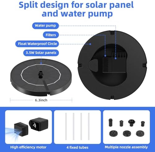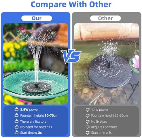 - 【Solar Panel Fountain】Our solar water fountain uses an upgraded 3.5W high-quality and efficient solar panel. This solar fountain has the advantages of fast start-up, high efficiency and strong stability.