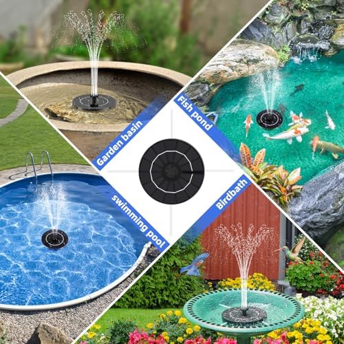 - 【Easy to use】Put the solar water fountain in the water, and when the solar fountain's panels receive sufficient sunlight, the water pump will start within 3 seconds. No external power supply is required, and installation and operation are simple.Solar powered fountain are widely used in swimming pools, parks, aquariums, small ponds, bird baths, oxygenated circulating water, garden decoration, pool fountains, rockery fountains, squares, courtyards, villa decorations, etc.