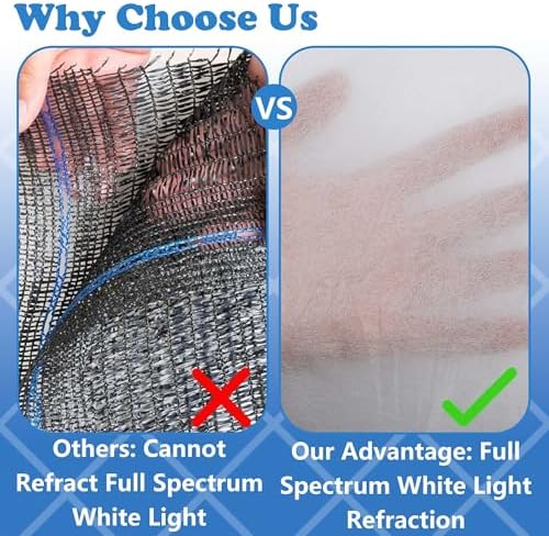 - Full Spectrum White Light Refraction: Our shade cloth for garden can not only effectively block strong direct sunlight, prevent extreme high temperature and sun damage to plants, but also meet the sunlight needed by plants, refraction full spectrum white light, so that your plants get balanced daylight.