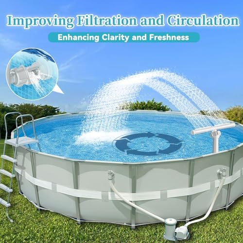 - 【Compatible with Most Pools】Pool fountain fits most 1.5' in-ground return jets and 1.5'/1.25' above-ground pool inlets/outlets. The 360° rotating head allows you to adjust the spray direction and height using the side valve, ensuring optimal performance for any pool shape.