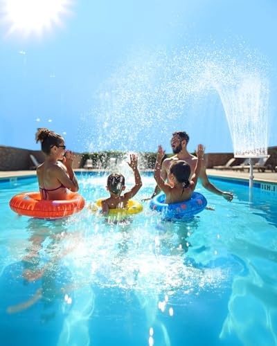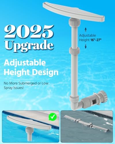 - 16-27' Adjustable Height – Our pool fountains for above ground pools features extendable tubing, allowing you to easily adjust the height from 16 to 27 inches—preventing the fountain head from dipping into the water and avoiding collisions with the pool edge. Enjoy higher, farther-reaching sprays for a more dramatic water display!
