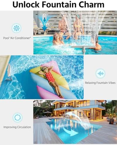 - Cooling & Relaxation Delight – Our above ground pool waterfall cools your pool water by 6-10°F—perfect for beating the summer heat. The soothing sound of flowing water helps you relax, while the vibrant spray and LED lighting create a visually stunning centerpiece—perfect for relaxation or playful family moments all summer long.