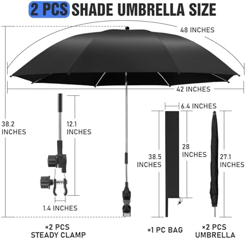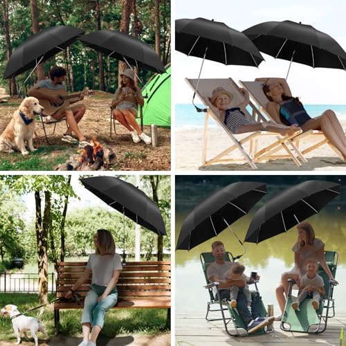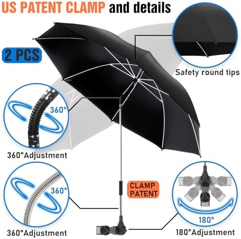 2 PACK Beach Umbrella with Clamp, 360 ° Adjustable Umbrellas for Chair, UPF50+ Umbrella for Beach Chair, Patio Chair, Wheelchair, Camping Chair, Golf Carts (Chair Not Included)