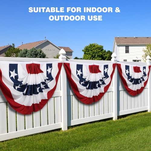 4 Pack Large USA Patriotic Pleated Fan Flag Set - 3x6 Ft American Bunting Flags with Sewn Stripes, Brass Grommets - Memorial Day Independence Day 4th of July Outdoor Decorations