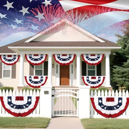 - Transform any space in minutes! Each 4-pack includes pre-installed grommets for hassle-free hanging on railings, pergolas, or event stages. Mix vertical banners with horizontal swags to create cohesive red-white-blue themes from porch to poolside.