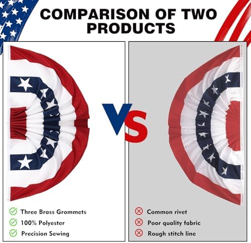 - Crafted from 100% high-density polyester, our 3x6 Ft pleated fan flag withstands intense sun, heavy rain, and strong winds. Double-stitched seams and 3 reinforced brass grommets prevent tearing, making it ideal for porches, gardens, and long-term outdoor display.