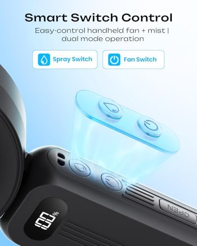 - 🔋【10-Hour Marathon Battery Life】 Powered by a robust 4000mAh rechargeable battery, this handheld misting fan lasts 3.5-10 hours per charge (varies by fan mode). Track power via LED display and recharge effortlessly via USB-C. Your all-day companion for indoors and outdoos cooling.