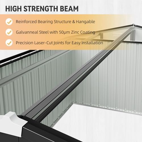 - All-Weather Performance & Space Optimization: Engineered with crush-resistant wall panels and waterproof joints, this garden shed withstands snow loads and heavy rains. The 33' depth maximizes vertical storage for tall equipment, while the sloped roof design adds overhead clearance. Optional shelving racks (not included) help organize shovels, umbrellas, and gardening tools