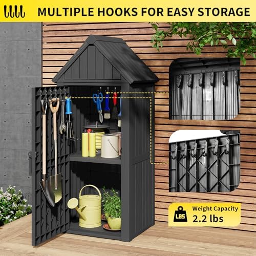 Outdoor Resin Storage Shed, Upgrade Durable Storage Cabinet with Removable Shelves and Lock Ring, Reinforced Floor, All-Weather Construction for Garden Patio Lawn (Black)