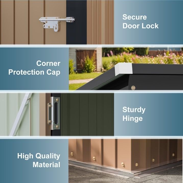 - Sturdy Frame Structure – This metal tool shed comes with a durable frame only, without a foundation, allowing flexible placement on various surfaces.