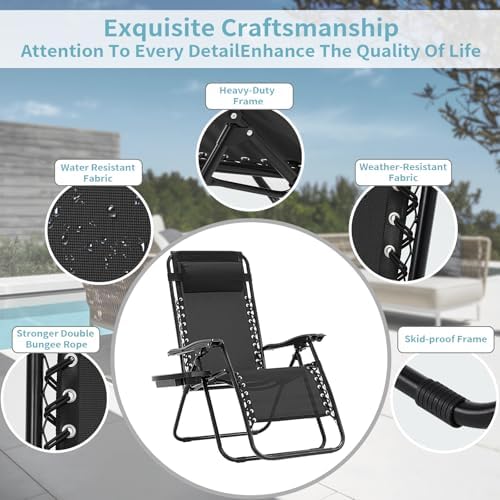 Zero Gravity Chairs Set of 2, 350lbs Capacity Folding Outdoor Patio Recliner with Adjustable Headrest & Cup Holder, Anti Gravity Chair for Backyard, Poolside & Lawn (Black)